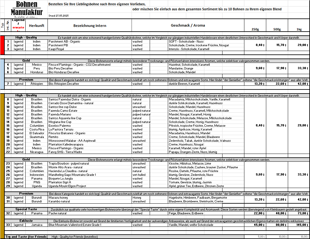 Rohkaffee-Bohnen